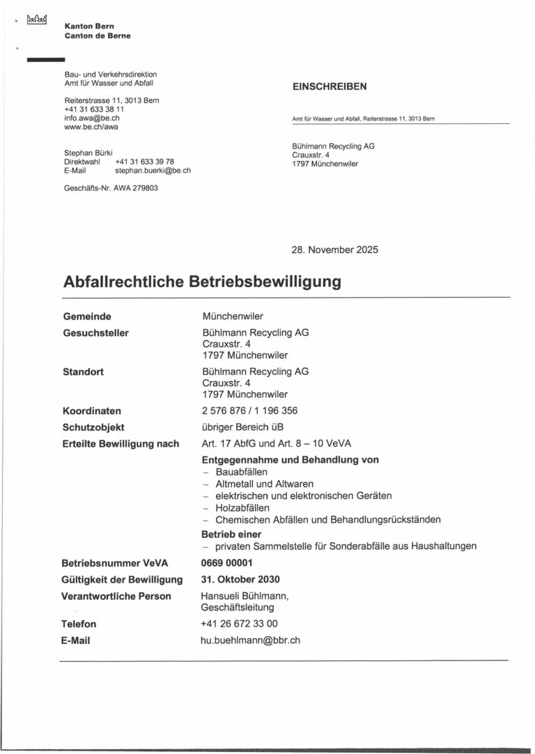 Bühlmann Recycling n'est pas seulement un nom, mais aussi un projet. Derrière ce nom se cache une philosophie globale avec des actions et des attitudes: ainsi, un procédé conscient et moderne et l’entretien de relations de confiance avec les clients en font tout autant partie que l’utilisation et le soin des chaînes de création de valeur - ceci dans le sens de toutes les personnes impliquées. Car nous voulons non seulement prendre en compte les aspects économiques, mais aussi sociaux et écologiques. C'est en cela que nous voyons notre chemin vers un succès durable. De plus, nous nous considérons comme des partenaires de nos clients: nous pensons avec eux, nous nous réjouissons ensemble lorsqu’il y a de quoi se réjouir et nous donnons chaque jour le meilleur de nous-mêmes.