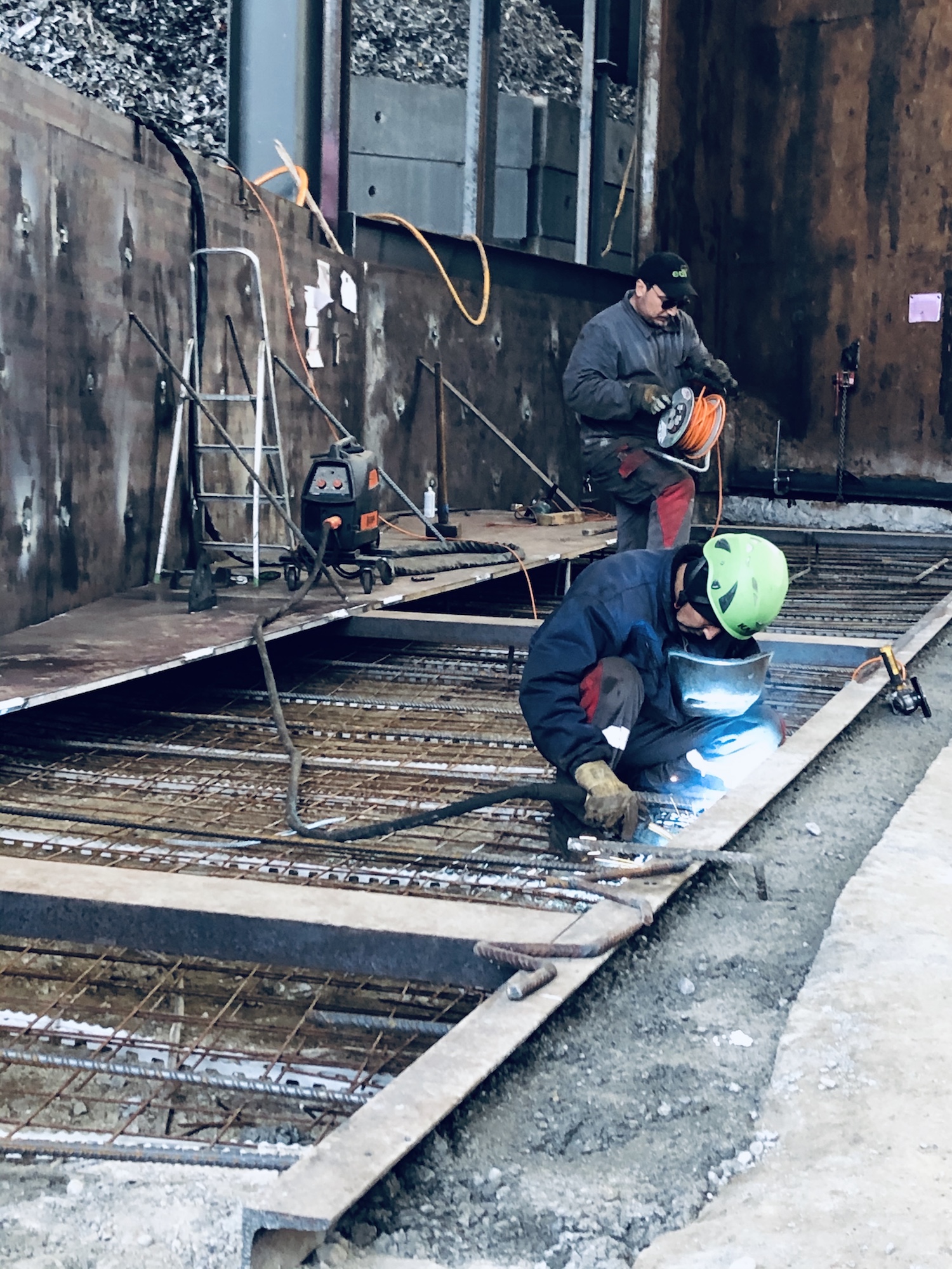 Derzeit wird unsere Schere repariert. Dank unserer firmeneigenen Werkstatt mit ihren engagierten Fachmenschen können wir selber revidieren, was und wo nötig. Die Maschine aus Italien frisst ganze Autos, und auch sie muss ab und an geflickt werden. So haben wir ihren Boden dicht gemacht, die Hydraulik repariert und den Hallen-Vorplatz bei der Gelegenheit neu betoniert und mit einer neuen Trennwand verschweisst.